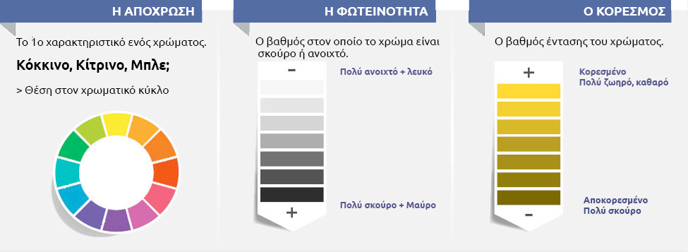 Το χρώμα, λοιπόν, αποτελεί μια αίσθηση που συνδέεται στενά με το φως (και εγγενώς) και με την ύλη (υφή επιφάνειας και είδος φινιρίσματος που επιλέχθηκε).