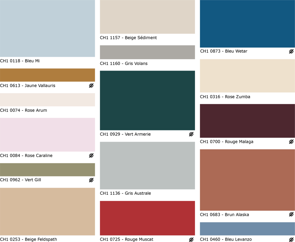 Η γκάμα των αποχρώσεων συνδυάζει με διακριτικό τρόπο τα διαχρονικά και κλασσικά χρώματα τα οποία είναι αφενός ουδέτερα αλλά αφετέρου είναι ήπια και εκλεπτυσμένα με μεγαλύτερη επιμονή στην άνεση και την σταθερότητα.